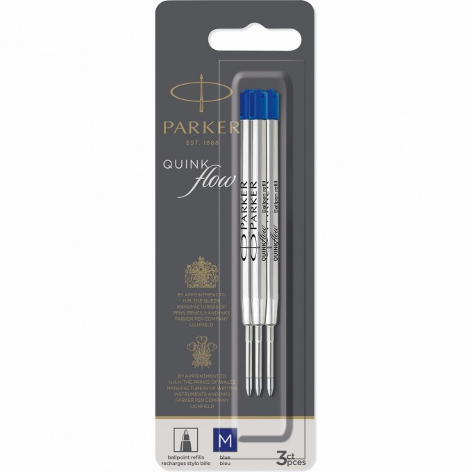 Стержень шариковый PARKER QUINKFLOW Z08 M 1мм синие чернила блистер (3шт) 2119152